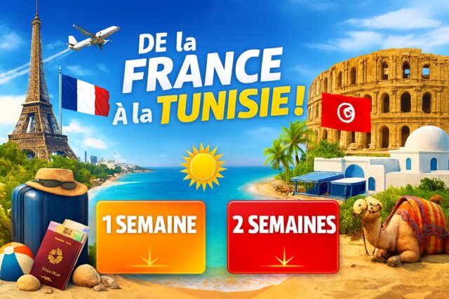 - Toulouse → Tunis : 154.99€ ✈️ Réserver sur Kiwi (du 06/03 au 15/03)