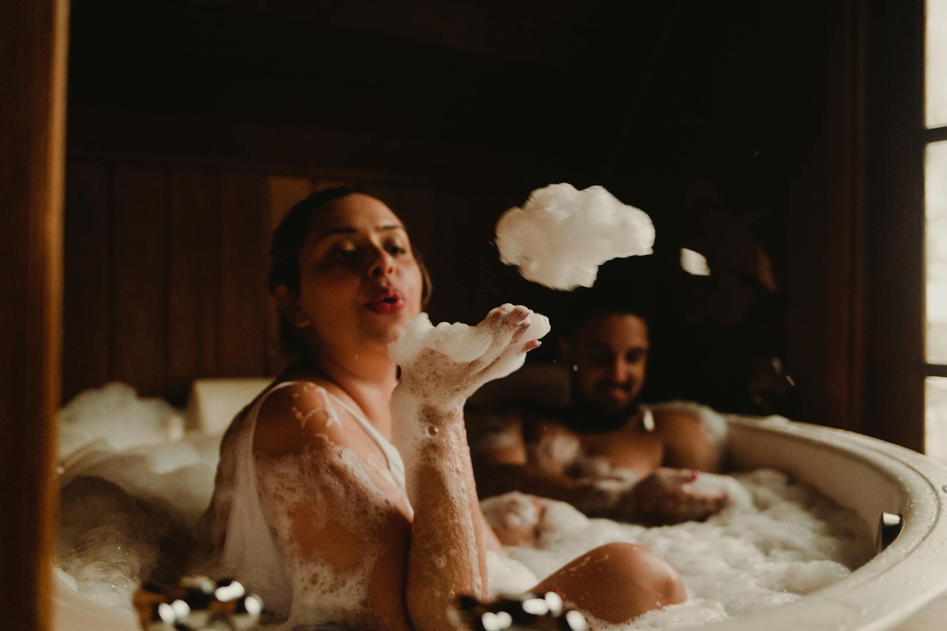 Couple dans un spa Alaena en train de se reposer et se détendre