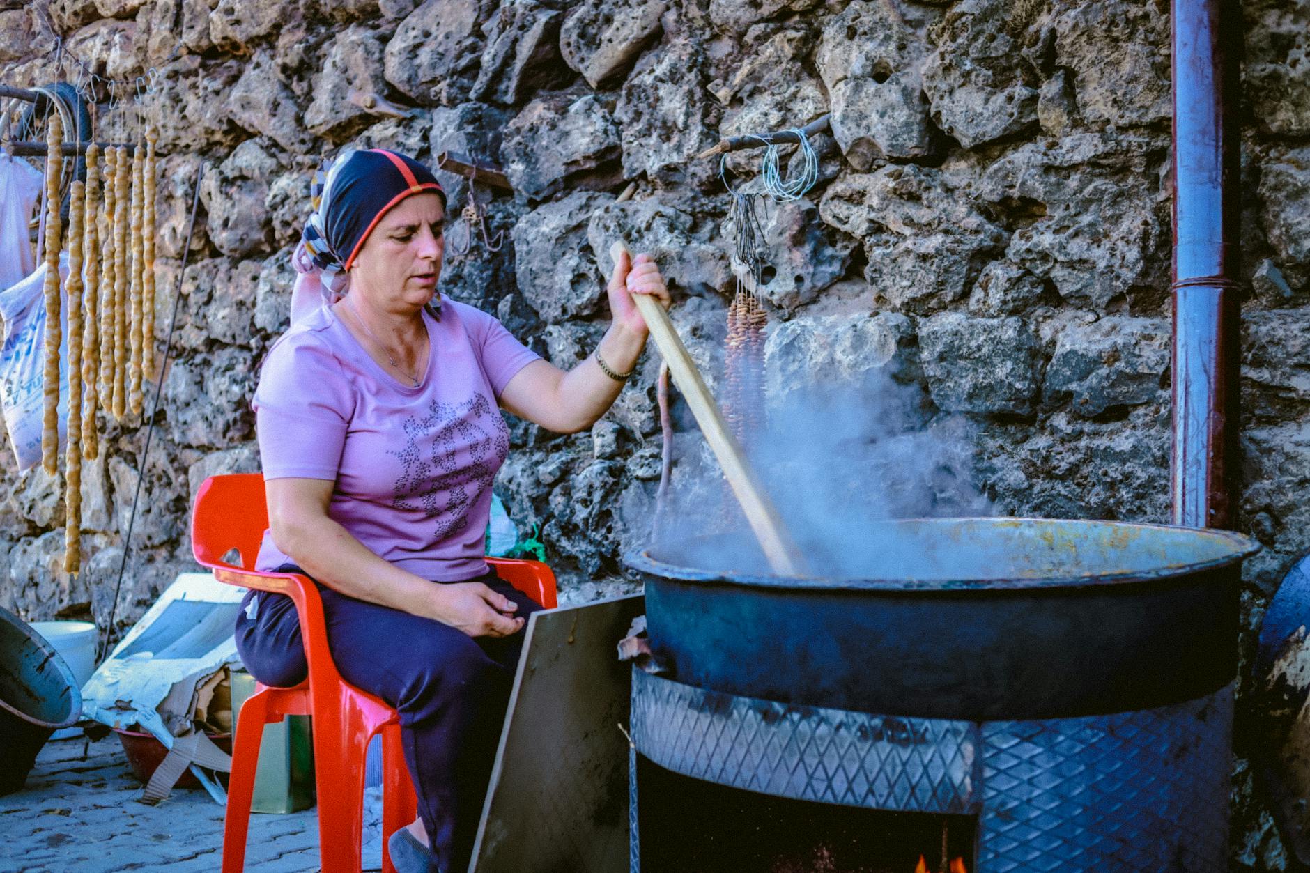 Famille préparant des msemen traditionnels au Maghreb